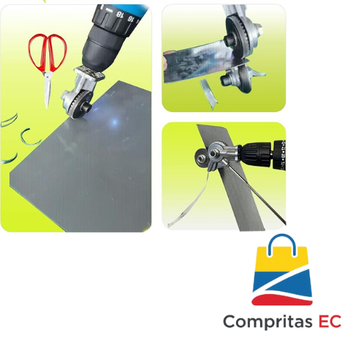 Cortador de placa para taladro eléctrico. Máquina de corte de taladro eléctrico, accesorio de tijeras de chapa eléctrica, de broca de corte de metal seguros y duraderos, cabezal de corte de metal de taladro eléctrico. DESCRIPCIÓN DEL PRODUCTO:Cortador de placas de taladro eléctrico: el cortador de placas eléctrico está hecho de acero y hierro de alta calidad, nuestro cortador de placas de taladro eléctrico tiene un cortador de placa de metal de doble cabeza, fuerte y duradero, afilado y resistente, no es fácil de romper y deformar, resistente al desgaste, lo que hace que el corte sea más fácil y trabajar más rápido, lo que te permite completar fácilmente un trabajo de instalación difícil, úsalo con confianza, ahorra energía, aumenta la eficiencia, ideal para cortar una variedad de materiales, y se puede utilizar durante mucho tiempo.Capacidad de corte: puede cortar rápidamente acero inoxidable de 25 GA (0.5 mm), hierro de 22 GA (0.7 mm), cobre, aluminio, malla de metal e incluso tablero de plástico de 19 GA (1.0 mm), fibra FRP, tablero de PVC, cartón y otras placas duras. Cuanto más grande sea el material, más fácil será de usar.Preciso y preciso: el cortador de hojas de metal tiene una ranura de posicionamiento que puede alcanzar un tamaño preciso y ayudarte a cortar varias piezas de metal con precisión. Es fácil de usar, con doble cabeza y velocidad de corte rápida, ahorrando tiempo y trabajo. Cuenta con una ranura de posicionamiento para un tamaño preciso para completar una amplia gama de piezas de metal como hierro.Seguro y duradero: sin contacto con la hoja de sierra o las hojas, y sin lesiones en las manos. Equipado con un robusto cabezal de engranaje de metal diseñado para una larga vida útil y durabilidad. Ajustado al cabezal de taladro sin necesidad de herramientas especializadas, es fácil de usar y ahorra tiempo y esfuerzo.Cómodo y portátil: ligero y portátil, fácil de transportar independientemente de la ubicación.